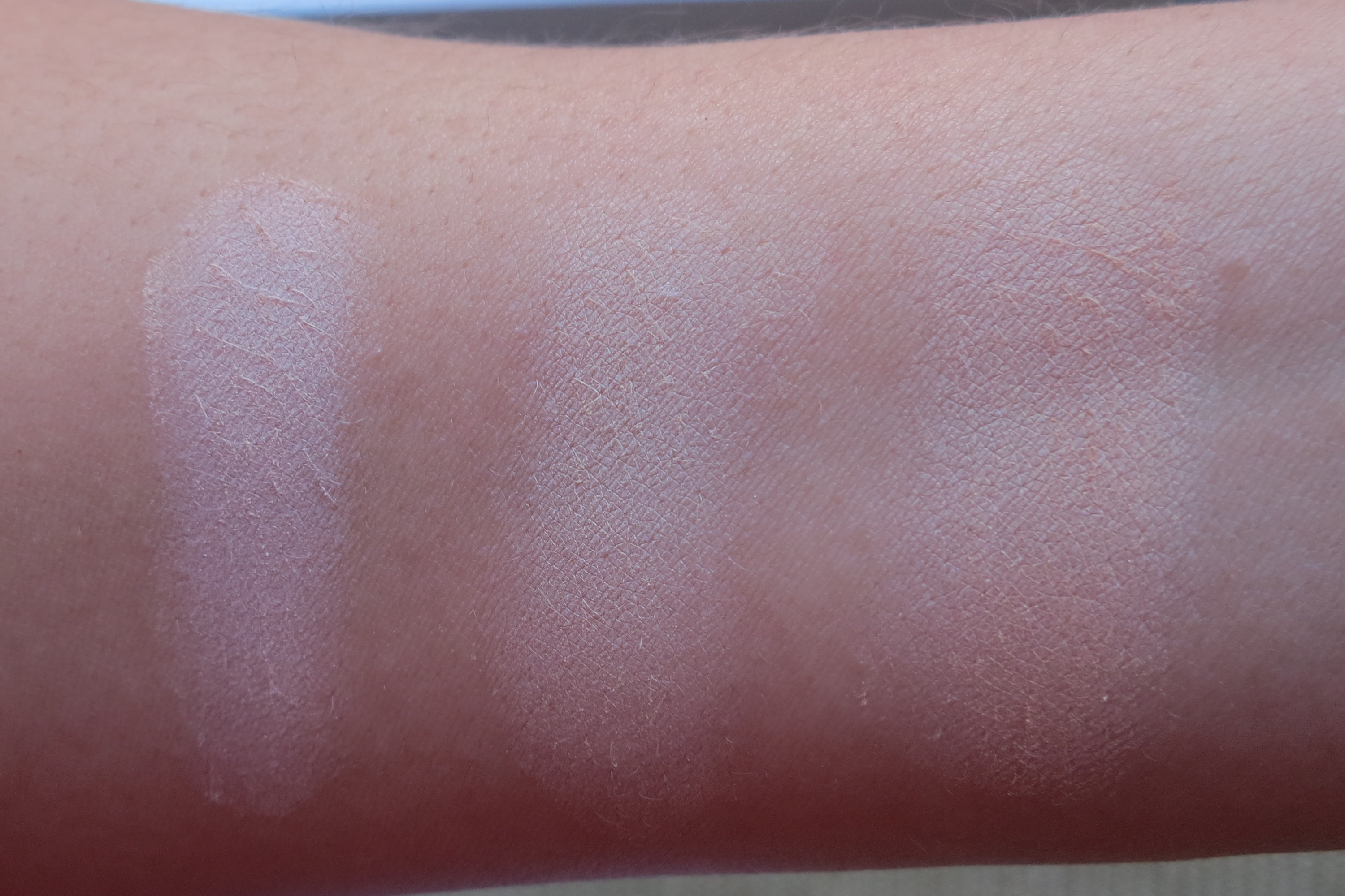 The biggest difference in these is that the LM clings on to dry areas. Since I have dry skin, I have definitely experienced this before. For that reason I cannot use the LM in the winter. KVD on the other hand doesn’t really do that. The picture below is close up and unedited. You can clearly see the right side looks a bit more dry/crusty than the left side.